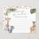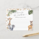 Crafted for the joyous celebration of a baby boy's impending arrival, this Baby Shower Advice Card is a treasure trove of wisdom for the mum-to-be. Featuring a charming watercolor safari theme with a giraffe, elephant, zebra, and lion, each animal is delicately framed by tropical leaves, adding a touch of wilderness elegance. The card's headline, "Advice to the mum-to-be," is gracefully penned in modern casual calligraphy, inviting guests to share their pearls of wisdom. As part of the "Wild One Safari Animals" collection, this card not only provides heartfelt advice but also serves as a beautiful keepsake from a memorable baby shower.
