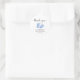 Cute sticker for your baby boy shower favours and thank you correspondence featuring "thank you" in a stylish script with swashes and a blue watercolor of baby feet. Underneath you can easily personalise with your name and shower date.