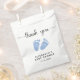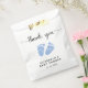 Cute bag for your baby boy shower favours featuring "thank you" in a stylish script with swashes and a blue watercolor of baby feet.