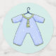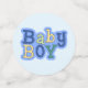 Sweet baby boy baby shower or gender reveal confetti with graphics of blue baby foot prints, baby pyjamas and graphic text reading Baby Boy. Customise to add any additional text.