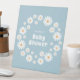 Baby Boy Shower Flower Power Daisy Wreath Blue Pedestal Sign