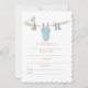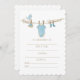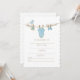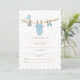 Invitation for a baby boy. A charming little bird rests on a clothesline adorned with baby garments. This delightful and playful invitation is perfect for that memorable baby shower.