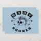 Cute blue skull and crossbones with Mohaw and BABY SHOWER text for baby boy.