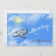 Teddy bear piloting an aeroplane with cloud of smoke for Baby Boy Shower invitation.