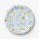 Perfect for a baby boy shower, serve your guests in style. This plate displays a lovely blue and white striped backdrop with lovely storks carrying the baby in a blue blanket. Customise if you like. Add to your shopping cart today or shop more baby shower items in this collection.