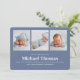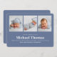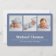 Welcome your little one in style with this baby boy announcement card featuring a clean and modern multi-photo collage design. With a simple yet bold navy blue and white colour scheme, this card showcases minimalist typography and contemporary lines, perfect for sharing newborn details in a fresh, polished way. Ideal for displaying baby stats and favourite photos, this card brings a timeless, understated charm to birth announcements. Celebrate your new arrival with this effortlessly chic, baby photography-inspired design.
