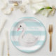 Baby Boy Swan Blue Script Baby Shower Paper Plate
