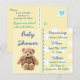 Baby Boy Teddy Bear Yellow, Blue and teal Baby Shower Invitation postcard. Quick and cheapest, yet adorably cutest way to affordably invite people to your teddy bear themed baby shower! Just personalise this postcard by adding in your party's information in the customise area!