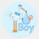 Unique Baby Shower Gifts for the New Mum or Mum to be. Baby Onsies, invitations,post  cards, keyrings, magnets, button party favours, keepsake mugs and more. Each Item can be personalised with names and dates. This Design Features a  Stork with a baby boy.