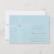 This elegant 3.5x5 baptism, christening invitation card features an ornate illustrated cross and a smaller cross with initials (monogram) on either side of it. The background colour is blue, and can be customised to your liking along with the text for your special religious occasion.