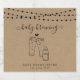 Hand-drawn beer and baby bottle toast artwork on a wonderfully rustic kraft background.