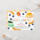 This cute " baby & brunch " baby shower invitation features a white background surrounded by pancakes, strawberries, blueberries, sausages, and a cup of coffee in watercolor. The reverse side features a white background with pink and yellow diagonal stripes. Personalise it for your needs. You can find more polar bear products at my store.
