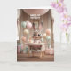 This charming first birthday card features an adorable baby bunny sitting in a high chair with a delicate cake topped with a number one candle, surrounded by soft pastel balloons and wrapped gifts. Set in a cozy, warmly lit room, the design captures the joy, love, and celebration of a baby’s very first birthday. A beautiful way to mark this unforgettable milestone with something heartfelt and sweet.