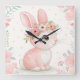Baby Bunny Princess with Floral Crown – Soft Pink Square Wall Clock