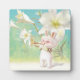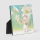 Baby Bunny Trumpet Player with Bird in Lily Garden Plaque