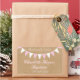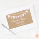 BABY BUNTING PINK BAPTISM CHRISTENING SQUARE FAVOR STICKERS. This pretty, rustic baptism, christening or first communion favour sticker features a kraft-paper-style background, baby pink and white bunting, and gorgeous script calligraphy with baby pink drop shadow. Customise with your own baby name, date and message. Designed by Pure Piglet© at www.zazzle.com/purepiglet*.