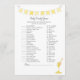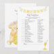 A fun game for the baby shower is the Baby Candy game. This game features a yellow banner at top and a honey dipper. On the reverse is a girl teddy bear leaning on a honey barrel watching a honey bee with templates.