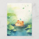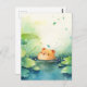 Baby Capybara Peeking Out of Calm Green Lily Pad Postcard