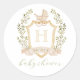 Baby Carriage Crest Monogram | Neutral Baby Shower Classic Round Sticker