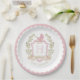 Baby Carriage Crest Monogram | Pink Baby Shower Paper Plate
