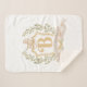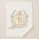 This sweet baby carriage monogram blanket is a perfect way to personalise your newborn's nursery. The design features a monogram crest with a baby carriage in a neutral colour scheme. The back has a white on tan polkadot pattern.