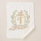 This sweet baby carriage monogram blanket is a perfect way to personalise your newborn's nursery. The design features a monogram crest with a baby carriage in a neutral colour scheme. The back has a fuzzy sherpa material. You can personalise with baby's name, weight and birth date.