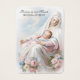 Remember your precious baby in prayer with this beautiful Catholic personalised memorial holy card of the Blessed Virgin Mary holding a baby in her arms with pink and blue floral accents.