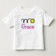 Baby clothing with custom name and yellow softball print. Personalized toddler clothes. Cute gift for girl.