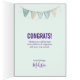 A baby congrats / baby shower greeting card with a bunting banner hung above a cute watercolor illustration of an egg sitting inside a wicker basket. Decorated with ribbons, bows, flowers and little hearts too. A pink flamingo and white bunny rabbit sit on either side waiting patiently for the big day. The inside of the card has a bunting banner and a personalised message.