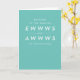 A funny and punny play on "ooohs and ahhs" this congratulations to the new parents card features the sweet text "welcome to the endless ewwws and awwws of parenthood." It's a fun and clever way to welcome a new baby. With its gender neutral teal background and interior text that can be customised, this greeting card is perfect for a baby shower for a boy or girl or twins!