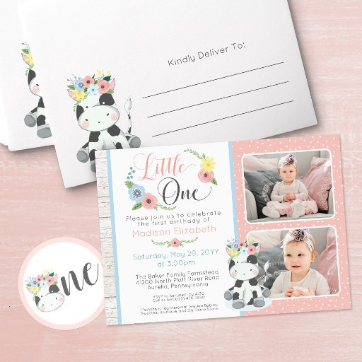 Adorable baby calf with sweet floral crown - the perfect design for your cow themed baby girl birthday celebration! An ideal way to celebrate with shabby farmhouse country style!