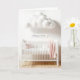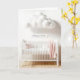 A white crib is adorned with plush pink blankets and pillows, fluffy clouds, and a hanging sign that reads, "I hope you dream."