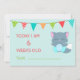 Colorful Flag Bunting and a baby kitten learning to stand is the background for this baby milestone card.