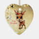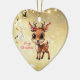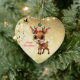 Celebrate the holiday season with this unique gold festive reindeer lover heart ceramic ornament featuring an endearing woodland forest animal cartoon graphic of a cute baby deer with poinsettia flowers tucked in the fawn's ear, and Merry Christmas written in red. Perfect reindeer with antlers for decorating your tree or as a thoughtful gift, this whimsical floral doe decor makes a cherished keepsake for years to come. Customise by changing the text, the font, the font colour, or remove the text. You can even transfer this design onto other products. Enjoy this design your way! Check out ForestBabies Xmas Deer Collection for matching decorations. 🎄🦌♡