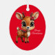 Celebrate the holiday season with this red festive oval metal ornament featuring an endearing woodland forest animal cartoon graphic of a cute baby deer with poinsettia flowers tucked in the fawn's ear, and Merry Christmas written in white. Perfect reindeer with antlers for decorating your tree or as a thoughtful gift, this whimsical floral doe decor makes a cherished keepsake for years to come. Customise by changing the text, the font, the font colour, or remove the text. You can even transfer this design onto other products. Enjoy this design your way! Check out ForestBabies Xmas Deer Collection for matching decorations. 🎄🦌