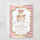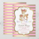 Baby Deer Flower Gold Stripe Baby Shower Invitation