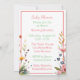A sweet little baby deer surrounded by pink flowers watercolor illustration girl's baby shower invitations.