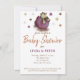 If you are looking for an adorable baby shower invitation that will be loved and treasured, look no further. With a minimalist design, the invitation is designed over a white background. Some stars in neutral colours of brown, yellow and green, coordinate perfectly with the sweet illustration of the baby brown dinosaur that just hatched from its green egg. Just below the image, you will find all the information for your invitation. You can change the text on the product page or you can click on customise further if you need to change the font, size or colours. The most prominent text in the invitation are "baby shower" and the name of the future mum.