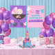 Baby Doll Happy Birthday Banner in Purple, Pink and Teal Blue