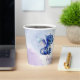 Fantasy lovers baby gender reveal paper cups, with sweet graphics of a blue baby dragon and a pink baby dragon, against a pink to blue gradient background. Personalise the custom text to suit your needs.