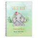 Watercolor illustration of an adorable baby elephant. Lovely pink flowers surround this super wild animal creature.
