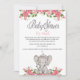 Baby girl baby shower by mail invitation with an adorable pink princess elephant wearing a silver tiara and surrounded by pink flowers. Contact us for help with customisation or to request matching products.
