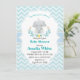 Use this elegant Baby Elephant Baby Shower Invitation to send out to all your friends and family to let them know the information on your special upcoming event.. Featuring baby elephant, flowers and baby blue chevron background. Please see our matching RSVP Card, Thank You Card and Diaper Raffle Ticket.