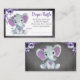 Baby Elephant diaper raffle ticket Purple Floral Enclosure Card
