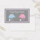 Let your party guests vote on the gender of the baby with this cute baby elephant ballot vote card! Text reads "Cast your vote!" with an adorable baby blue elephant and baby pink elephant and boxes boy and girl respectively for guests to indicate their guess! Tally the score and reveal which team won over this fun party activity!