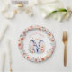 A sweet baby elephant surrounded by pink and coral flowers watercolor illustration birthday party personalised paper plates for a little girl.