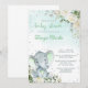 Baby elephant and green flowers girl baby shower invite.