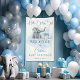 Celebrate your little one with this irresistibly cute baby sprinkle banner featuring a charming baby elephant sitting next to a gift box topped with a blue bow. The heartwarming design includes the cheerful message "Hello Baby Boy" and "Welcome", perfect for honouring the arrival of your bundle of joy. With soft pastel blues and whimsical artwork, this design is ideal for baby sprinkles, boy baby showers, elephant-themed celebrations, or gender reveal events.