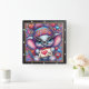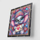 This enchanting square wall clock features a vibrant digital illustration of a cheerful baby elephant with large, sparkling blue eyes. The elephant is dressed in a colorful, patterned knit beanie and a matching striped scarf, holding a small sign that reads "I Love You" with a bright red heart. The background is a dense, psychedelic tapestry of swirling patterns, multi-colored hearts, and whimsical stardust in shades of purple, blue, and pink. The artwork is set within a modern black wood-grain frame with bold white numeric markers for easy readability. This functional home accessory serves as a perfect decorative piece for nurseries, playrooms, or as a heartfelt gift for Valentine Day. Its high-detail composition and warm, affectionate theme provide a joyful focal point for any interior space.