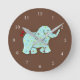 A cute baby elephant decorates this wall clock. The design is from an original illustration.